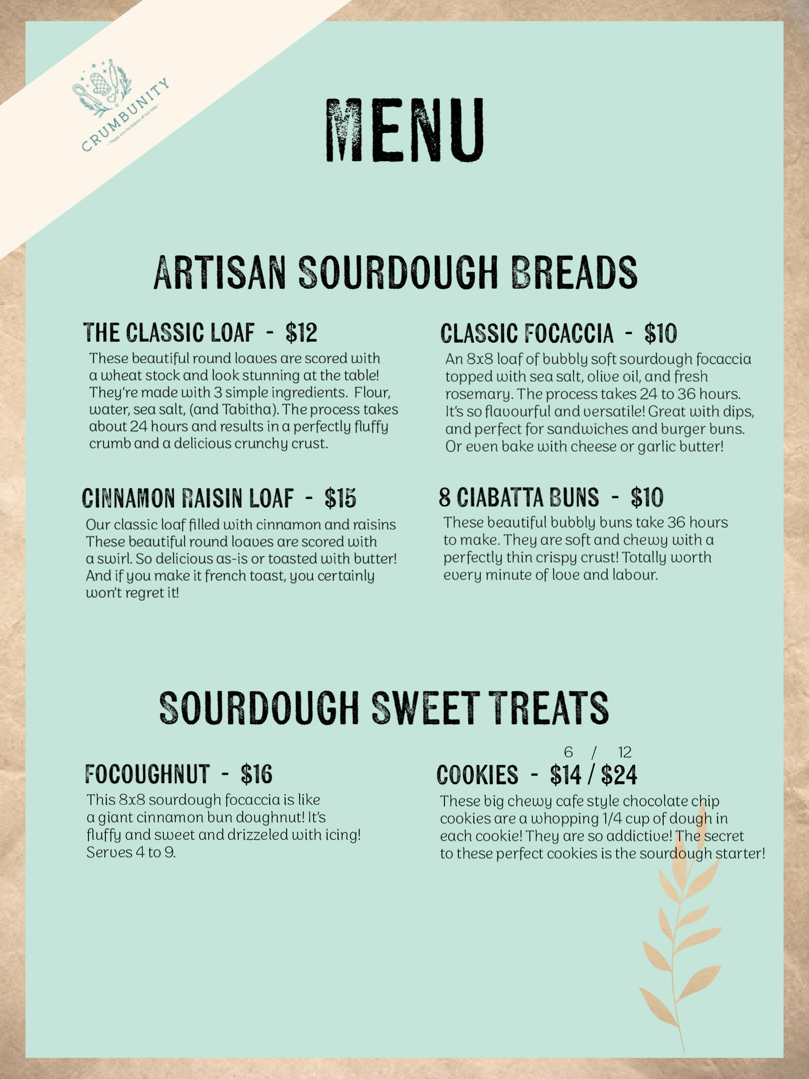 Friday bake days are listed below.To place an order simply fill out the order form under the menu.